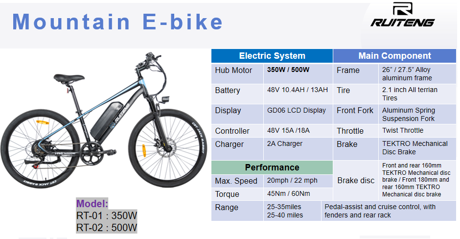 RUITENG RT-01 OEM E-bike 350W Mountain Electric Bike